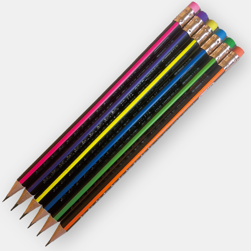 HB六色荧光抽条皮头铅笔